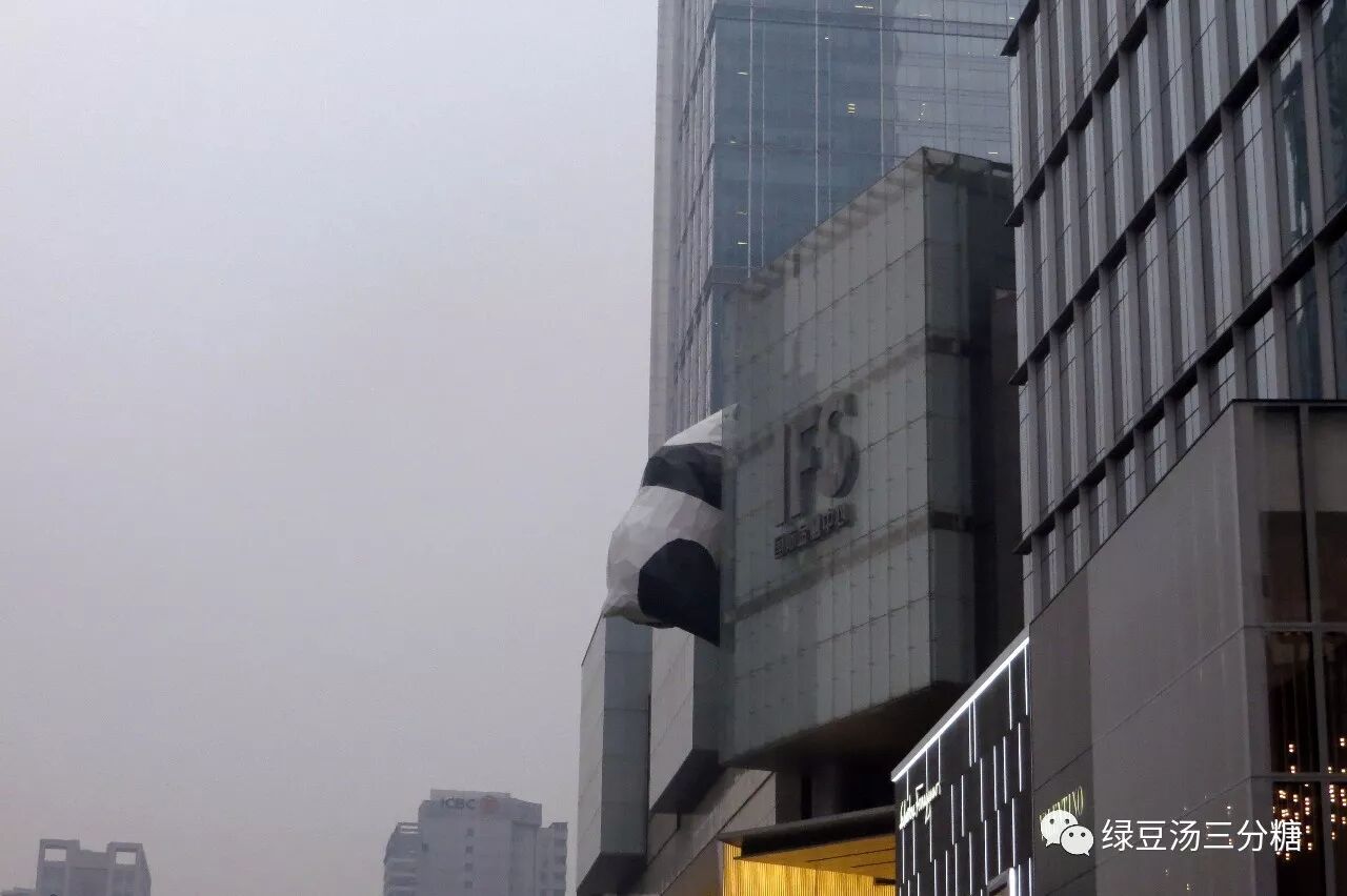 坐地铁去春熙路,出到地面,就是IFS的楼下。抬头看,会有一只巨大的大熊猫扒在IFS裙楼的边缘,怎么扒也扒不上去的样子太可爱了!
