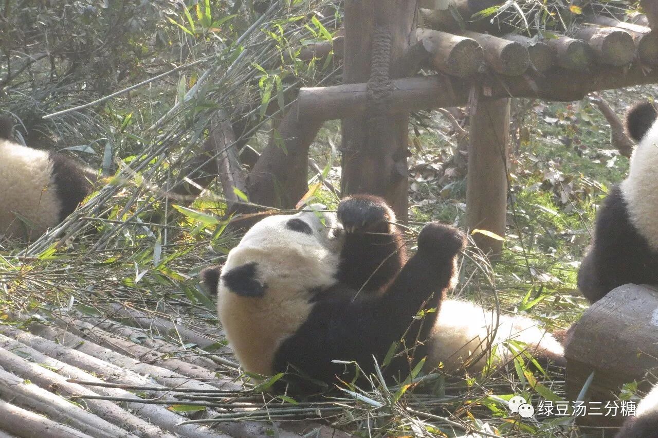 熊猫基地是一座山,山腰的太阳产房、山顶的月亮产房可以看到最可爱的只有一两岁的熊猫;山顶的1、2号别墅可以看到一些明星熊猫。